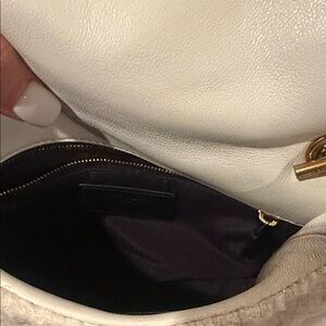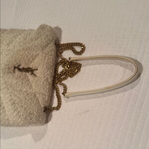 Chic Yves Saint Laurent clutch with a textured finish. Features iconic logo detail. Ideal for stylish outings.