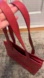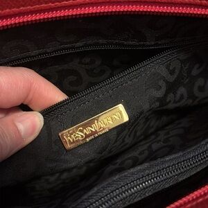 Chic red shoulder bag with elegant embossed design. Features iconic YSL logo. Ideal for stylish outings.gorgeous Tote New
