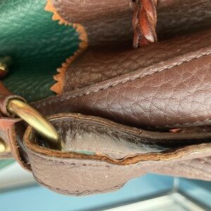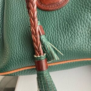 Very good condition, I find the leather they used on these Dooney bags just incredible - the leather on the bag looks brand new (it's made of All Weather leather). Notes: - Exterior leather on 'bag' part is perfect - Interior is suede, perfectly clean - The piping and the trim look good, no issues - Most of the strap is perfect, however as shown in the pic, the edge coat in the area where the strap loops around to connect to the bag hardware is coming off / cracking (normal wear, you can have new edge coat applied professionally or do it yourself if you know how, but it's just one of those things that happen over time - my vintage coach all have this issues but I just let it be myself) Other details: - Brass hardware (buckle says solid brass) - There a leather piece with a brass loop inside by the Dooney tag to attach keys and / or a pouch - There is one little leather slider piece on the buckle side of the strap (it never had two, just one on the buckle side in case you were wondering) Measurements (approx): -Bag portion (excluding strap) height of 11 inches -Length across, left to right 10 inches -Depth of 5 inches -Strap drop - variable, has 5 holes for the buckle on each side, I have it somewhere in the middle with a 12 inch drop (note - this is a shoulder bag, the strap is not long enough for a crossbody - at least on me and on most people I would think) -
