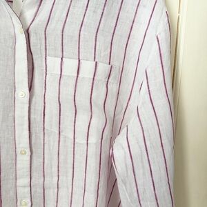 Brand new with tags boyfriend 100% linen shirt from Gap in an XL Tall. White with burgundy pinstripe. Oversized, longline fit, like a tunic. High low hem. Shoulder to longest part of hem is 35”, shoulder to shortest part of hem is 32”, armpit to armpit is 26”