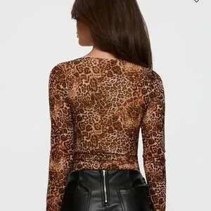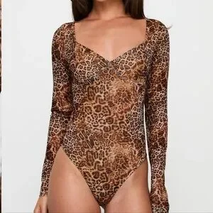 Stylish leopard print bodysuit. Long sleeves and scoop neckline. Perfect for a bold look.