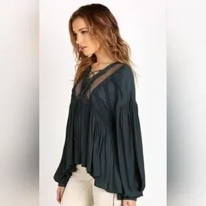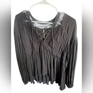Free People Black Lace-Up Dont Let Go Peasant Boho Size Small Oversized PTP 22
