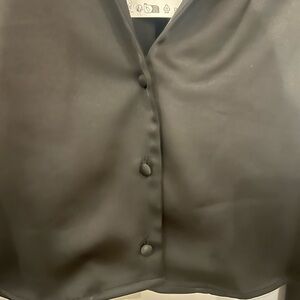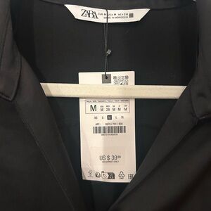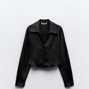 Chic black satin shirt by Zara. Features a smooth finish and classic collar.