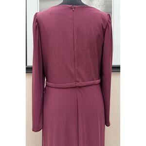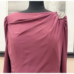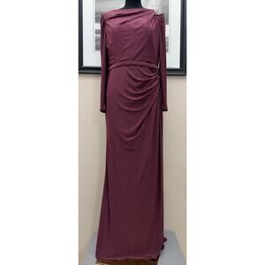 The NWT IEENA Mac Duggal 55695 Boat Long Sleeve Jersey Trumpet Gown is a stunning formal gown perfect for weddings, parties, or cocktail events. The dress features a solid mauve color with beaded accents, a long sleeve, and a zip closure. Made from jersey fabric, this ball gown exudes elegance and sophistication, making it a standout choice for any special occasion. Designed by the renowned brand Mac Duggal, this size 10 gown is sure to make a statement and turn heads wherever you go.