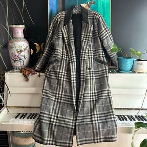 Novelti Plaid Trench Coat - Black and White Winter jacket XL