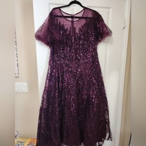 Mac Duggal Purple High Neck Flutter Sleeve A Line Embellished Dress 20477 Sz 22W