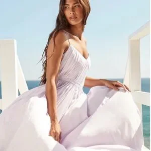 Trina Turk Women's Asymmetrical Pleated Sleeveless Cherry Grove Purple Lavender Maxi Dress Size Medium NEW