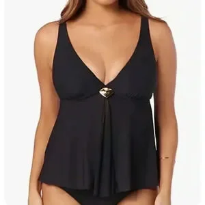 Amoressa by Miraclesuit Farrah Black Tankini Swim Top size 6 NWT