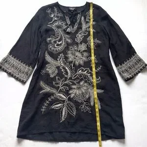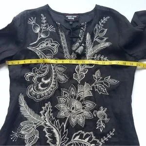 Johnny Was Floral Embroidered Shift Dress Small Black Boho Chic Eclectic Tassels
