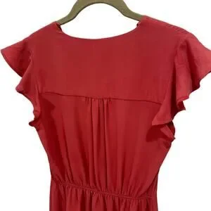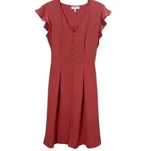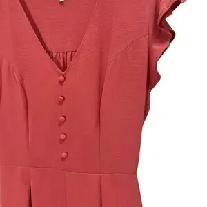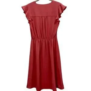 Monteau Salmon Pink Casual Midi Slip Dress Flutter Sleeves Button Front Size XS