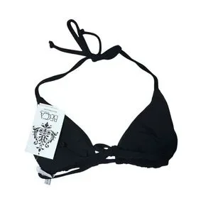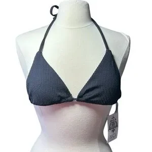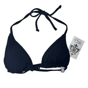 BECCA black ribbed triangle string tie bikini swim top size S NWT