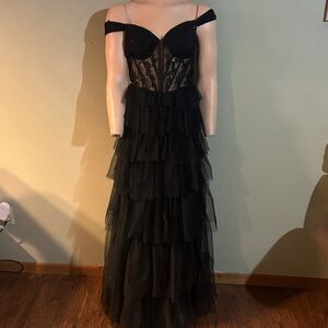 Blondie Nites Tiered Ruffle Off the Shoulder Corset Gown size 9 NWT