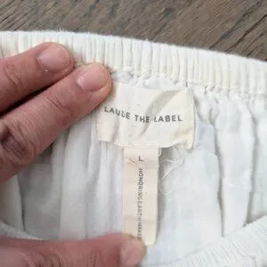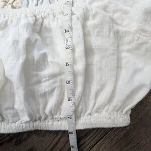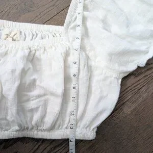 LAUDE the Label White Organic Cotton Gauze Square Neck Puff Sleeve Crop Top - L