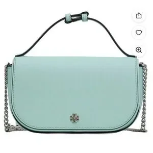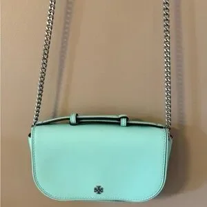 New Tory Burch Emerson top handle crossbody soft aqua new without tags. Silver chain and hardware.