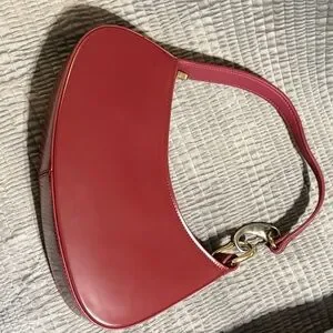 Chic Dolce Vita shoulder bag in deep burgundy . Sleek design with gold accents. Perfect for elevating any outfit. The color shows more red, but it really is a burgundy. Let me know if you would like additional pictures.