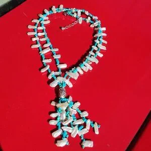 Jay King DTR mine finds Turquoise Keshi Pearl Tassel Necklace 925 Sterling Silve