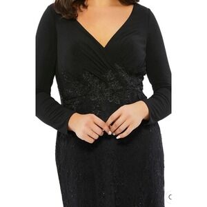 MAC DUGGAL 67896 Wrap Over Long Sleeve Lace Appliqué Black Trumpet Gown 16W #15