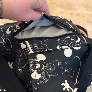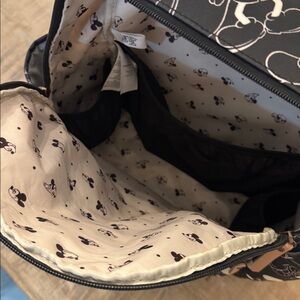 Full size backpack, used for a diaper bag only for Disney, does have some red color transfer on back and bottom as seen in photos, not visible from the front. Still great condition and clean just downsizing my bag collection
