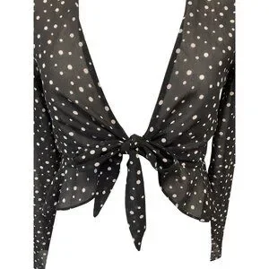 NWT-Urbsn Outfitters Polka Dot Sheer Black Long Sleeve Tie-Front Blouse