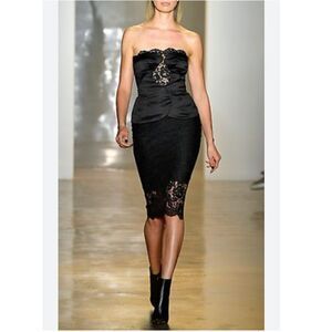 CUSHNIE ET OCHS Strapless Black Duchess Satin Lace Midi Dress Size 6