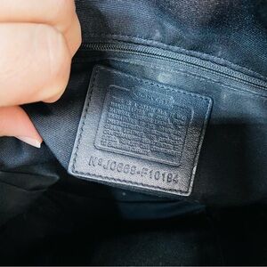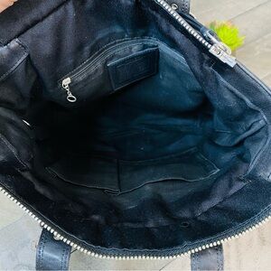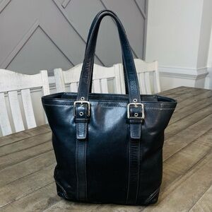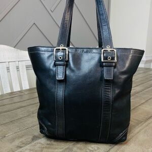 Coach Hampton Vintage Black Smooth Leather Tote Shoulder Bag. This classic style is known for its durable, glove-tanned leather construction and silver-tone hardware.