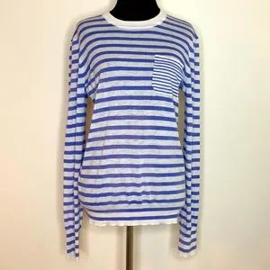 EQUIPMENT FEMME Wool Cashmere Blend Blue Striped Thin Sweater M