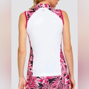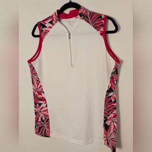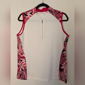 Tail Women's Novelist Floral Sleeveless Too Ladies Sz L Golf 1/4 Zip White EUC