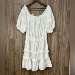 Ramy Brook LaLa White Off the Shoulder Tiered Mini Dress