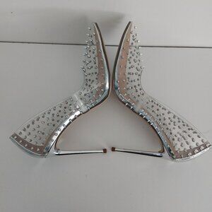 Steve Madden Pumps Silver Spiky Studs 8 Clear Pointy Toe Rock Glam VALA EUC