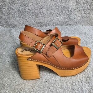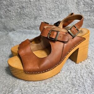 Free People Belem Leather Wood Platform Clog Sandals Brown Womens 39 8-8.5 NEW