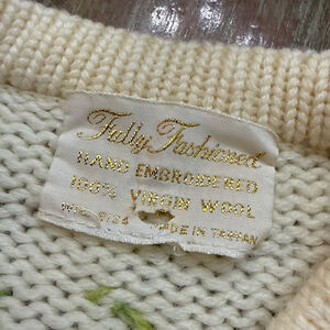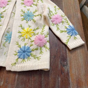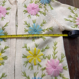 Fully Fashioned 50s Vintage Rare Cream Wool Floral Hand Embroidered Cardigan S