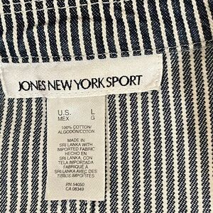 Jones New York Sport blue & white striped denim jacket 100% cotton. 3 pockets. L