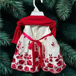 3-6mo Embroidered Christmas white and red Purple&Rose dress. Dsct w bundle.