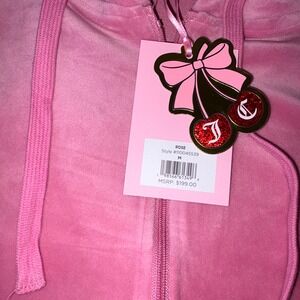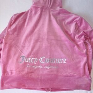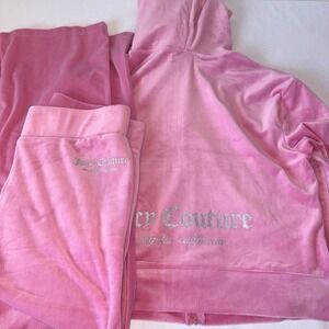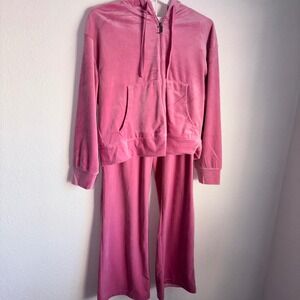 Juicy Couture Pink Velour Tracksuit Hoodie & Wide Leg Pants Set Silver Logo m