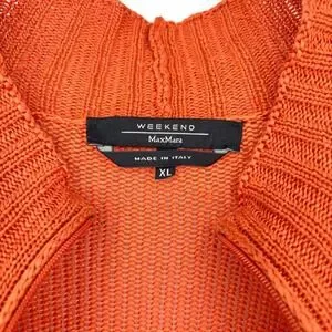 Keywords: Max Mara Weekend cardigan, orange knit sweater, women's XL sweater, cotton cardigan, zipper sweater, Made in Italy fashion, designer knitwear, fall fashion, spring fashion, casual chic, preppy style, layering piece, vibrant knit, luxurious cotton