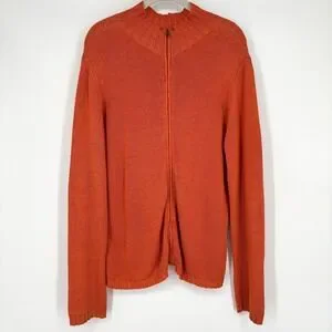 Max Mara Weekend 100% Cotton Orange Zip Cardigan Sz XL Made in Italy