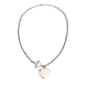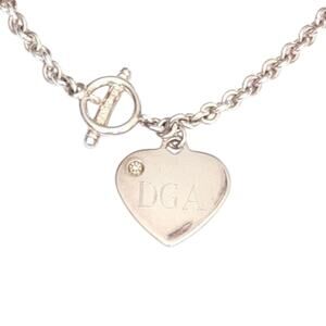The heart pendant is personalized with the initials "DGA" and bears the official "Lenox 925" hallmark, ensuring its silver purity. Weighing approximately 37.42 grams, this piece offers a luxurious feel and a timeless aesthetic. The heart drop measures 1 1/8", making it a sophisticated statement piece for any jewelry collection.
