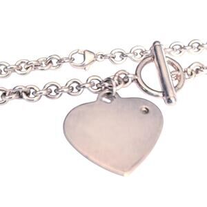 This elegant Lenox sterling silver necklace features a substantial 18" rollo link chain and a heart-shaped pendant accented with a genuine small diamond. The design includes a decorative faux toggle front closure, though it secures with a practical lobster clasp for safety.
