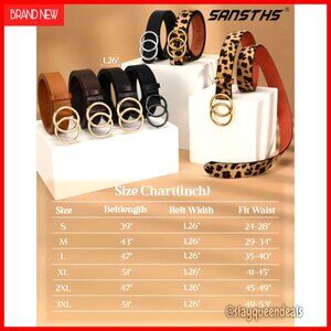 Women's Leather Belt with Double Ring Buckle Adjustable 24-55 Inches