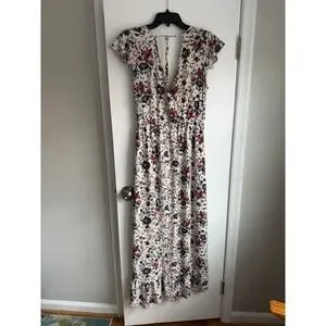 Band of Gypsies Floral Maxi Wrap Dress Ivory Navy Mauve High Low Boho Large