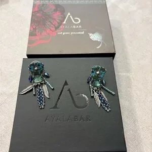Discover the artistic charm of Ayala Bar with these exquisite blue and green earrings. Perfect for adding a unique touch to your ensemble.