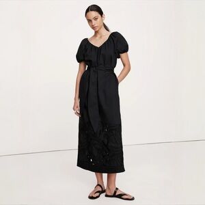 NWT Banana Republic Embroidered Cotton Poplin Ruched Midi Dress