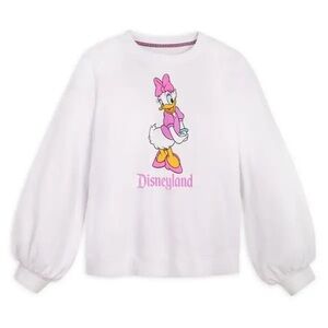 Adorable Disney sweatshirt with Daisy Duck design. Features white base and pink highlights. Ideal for playful style.