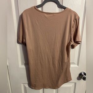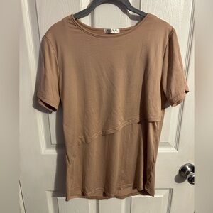 Size small. Asymmetrical nursing access panel. Thick, soft material. Taupe/very like pink color.