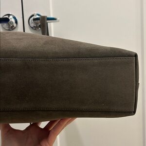 Chic Coach hobo bag in brass/olive suede. Perfect for everyday style.