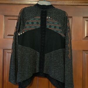 Miss Me asymmetrical open front embroidered lace sweater cardigan