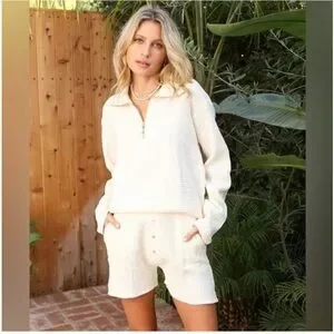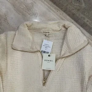 DONNI. Waffle 1/2 Zip Pullover Cream + Freshwater Pearl. Size M NWT