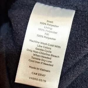 2. A sleek navy blue full-zip quilted puffer vest, a timeless essential that's incredibly versatile for everyday wear.