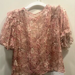 Anthropologie Pink Floral Flutter Sleeve Blouse