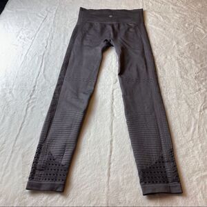 IMI Gray Leggings With Lattice Panels. Excellent used condition. No size tag please see measurements proved. Measures waist 24”, inseam 24”, rise 10”.